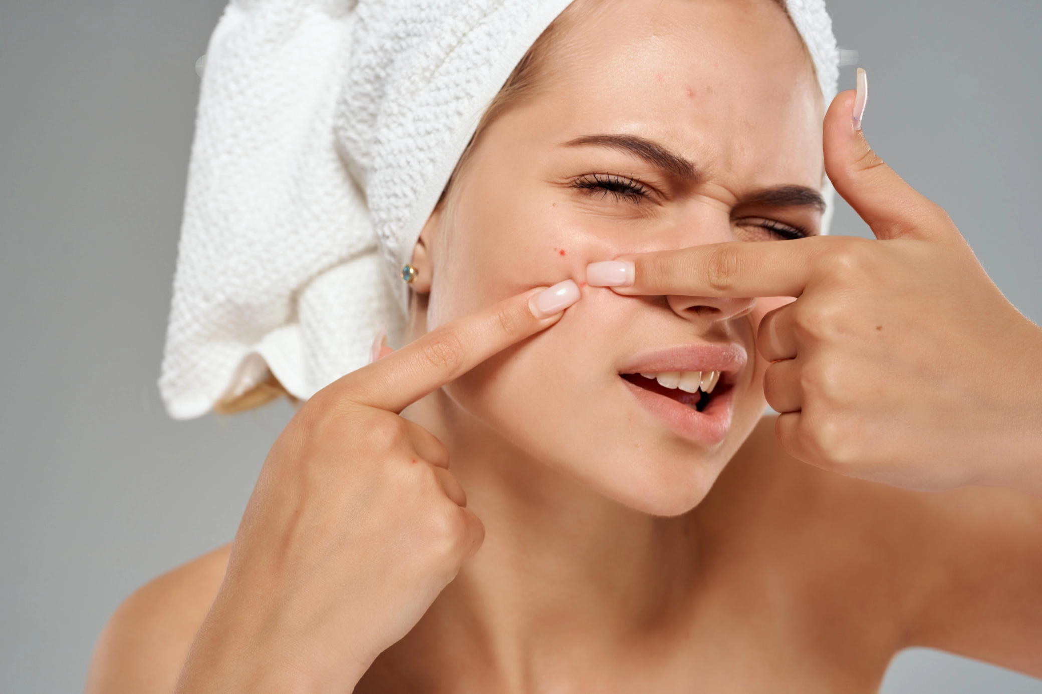 - počkajte minútu alebo dve pred stlačením akné na tvári alebo tele (aby pokožka mohla vyschnúť).